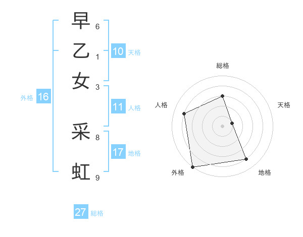 早乙女 采虹さんを姓名の画数から五運を鑑定