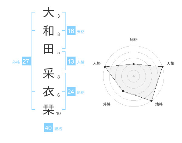 大和田 采衣栞さんを姓名の画数から五運を鑑定