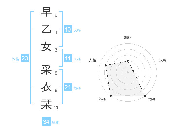 早乙女 采衣栞さんの総格は34画の2点