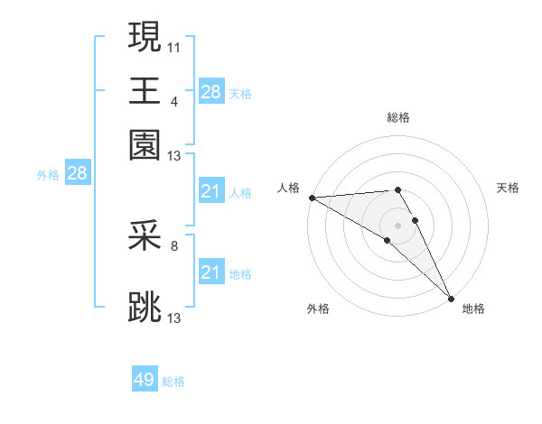 現王園 采跳さんを姓名の画数から五運を鑑定