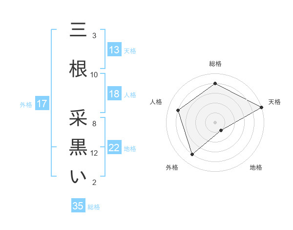 三根 采黒いさんの天格は13画の5点!
