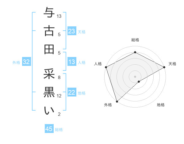 与古田 采黒いさんを姓名の画数から五運を鑑定