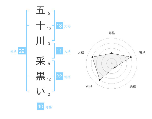 五十川 采黒いさんを姓名の画数から五運を鑑定