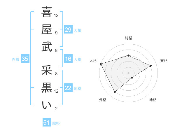 喜屋武 采黒いさんを姓名の画数から五運を鑑定