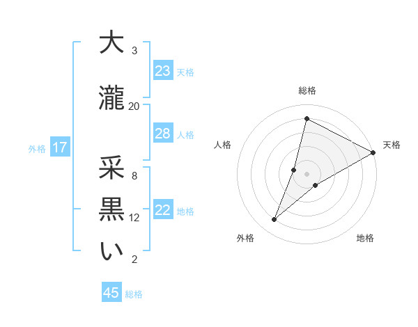 大瀧 采黒いさんの天格は23画の5点!