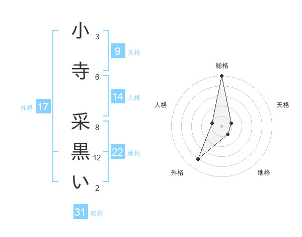 小寺 采黒いさんの総格は31画の5点!
