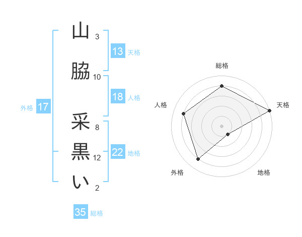 山脇 采黒いさんを姓名の画数から五運を鑑定