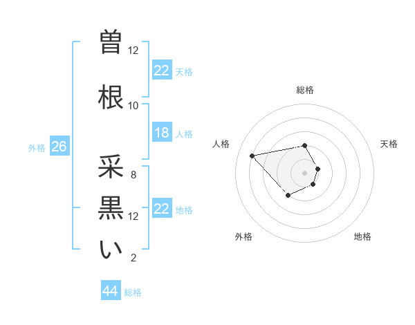 曽根 采黒いさんを姓名の画数から五運を鑑定