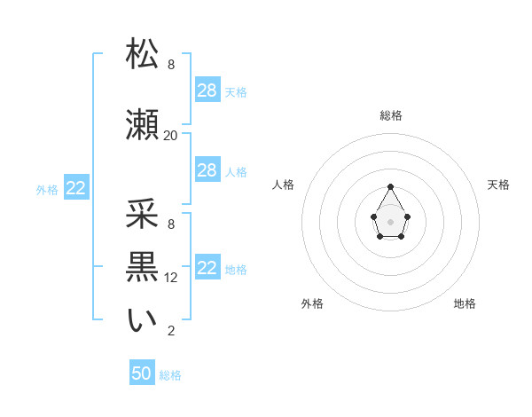 松瀬 采黒いさんの総格は50画の2点!