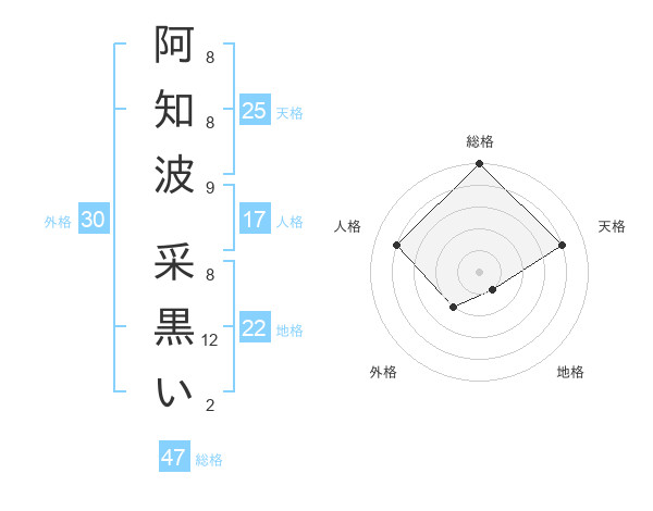 阿知波 采黒いさんを姓名の画数から五運を鑑定