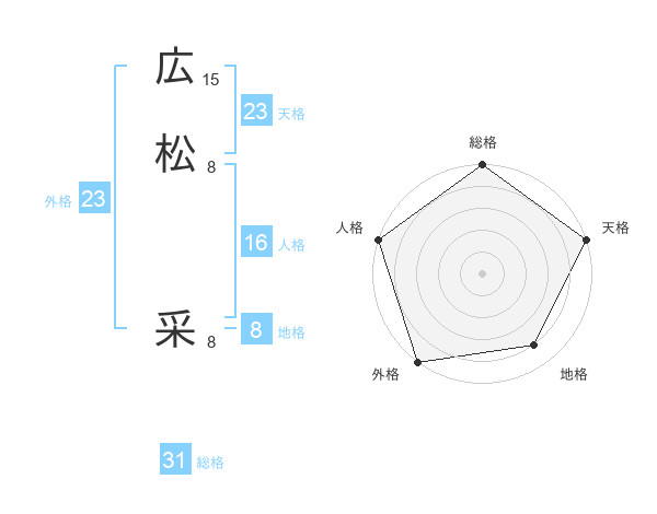 広松 采さんの外格は23画の5点!