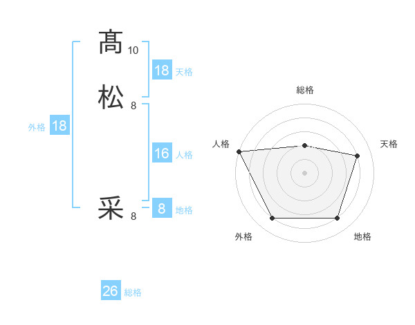 髙松 采さんの総格は26画の2点!