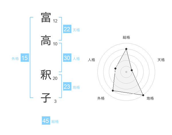 富高 釈子さんの総格は45画の4点!