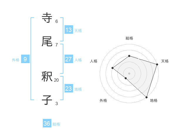 寺尾 釈子さんの天格は13画の5点!