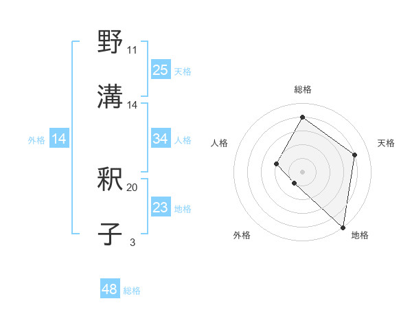野溝 釈子さんの総格は48画の4点!