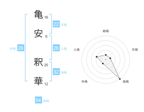 亀安 釈華さんの天格は22画の1点!