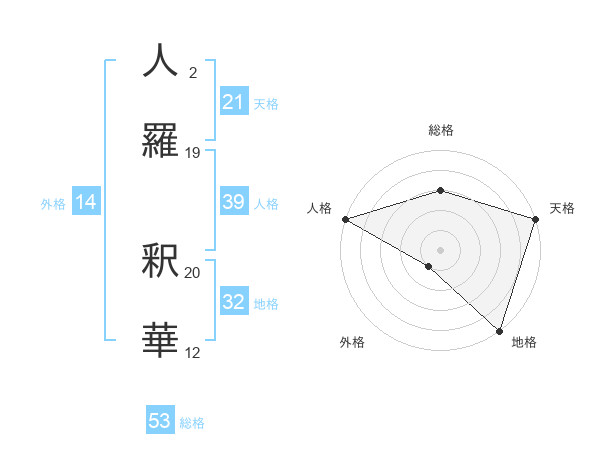 人羅 釈華さんの総格は53画の3点!
