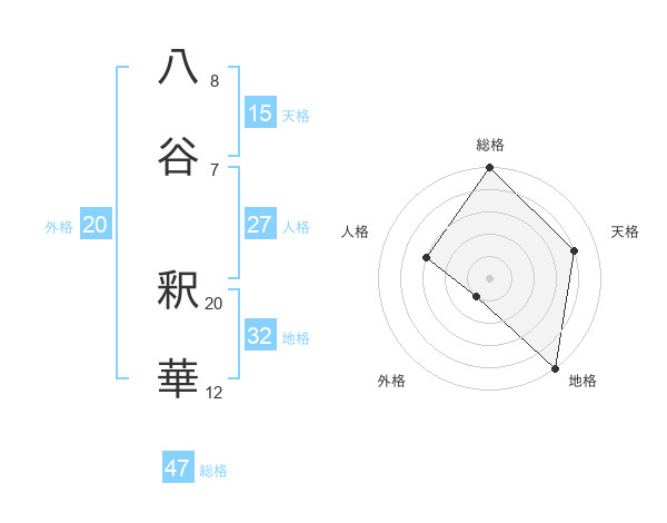 八谷 釈華さんの総格は47画の5点!
