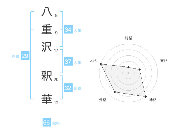 八重沢 釈華さんの総格は66画の1点!