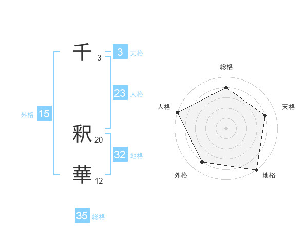 千 釈華さんの総格は35画の4点!