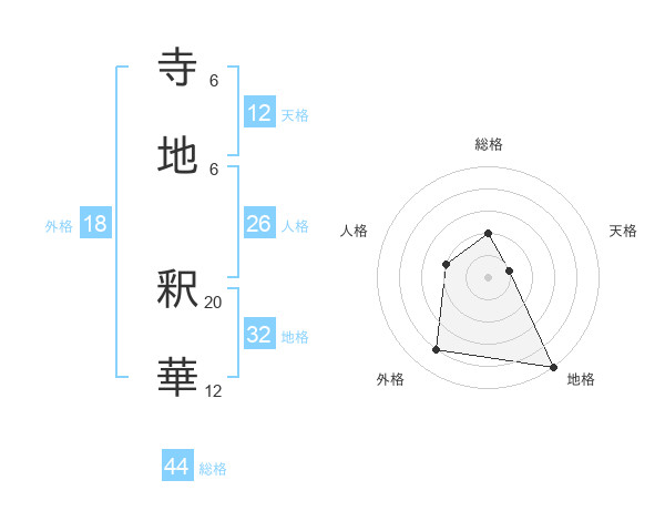 寺地 釈華さんの総格は44画の2点!