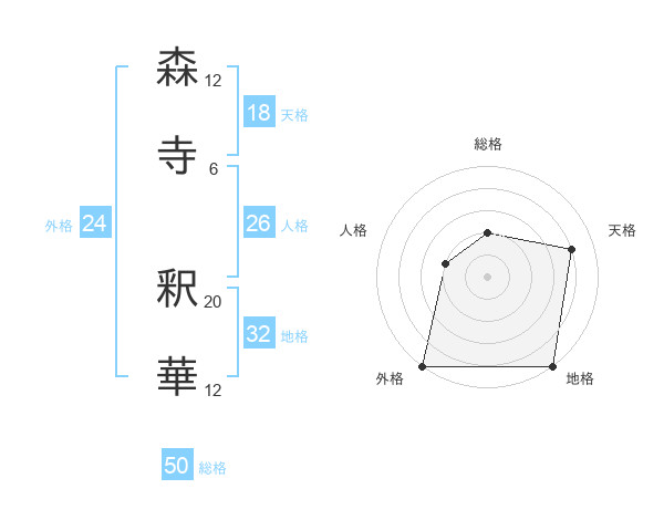 森寺 釈華さんの総格は50画の2点!