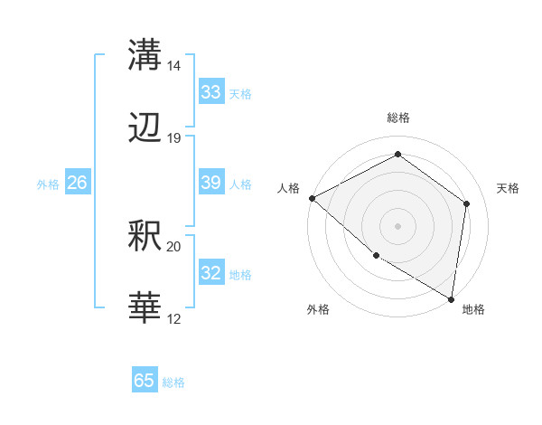 溝辺 釈華さんの総格は65画の4点!