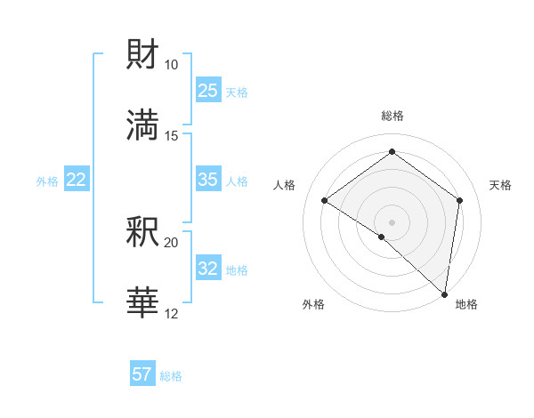 財満 釈華さんを姓名の画数から五運を鑑定