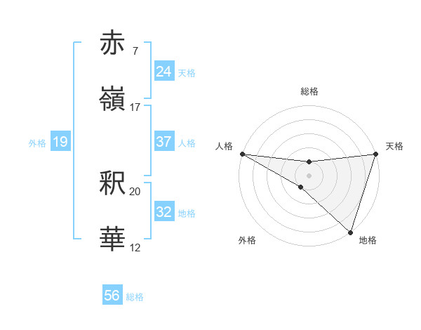 赤嶺 釈華さんを姓名の画数から五運を鑑定