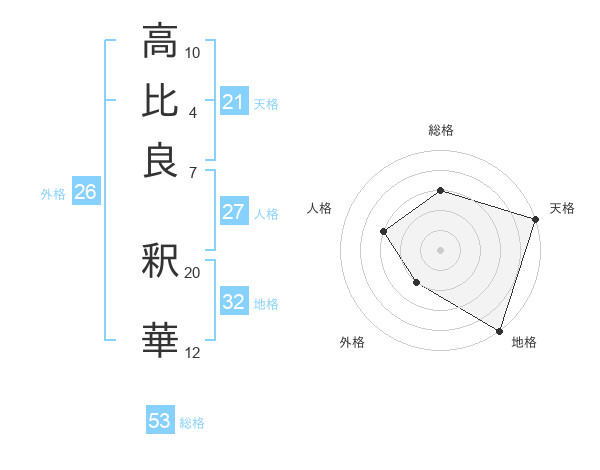 高比良 釈華さんを姓名の画数から五運を鑑定
