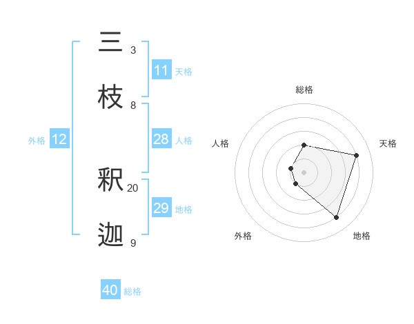 三枝 釈迦さんを姓名の画数から五運を鑑定