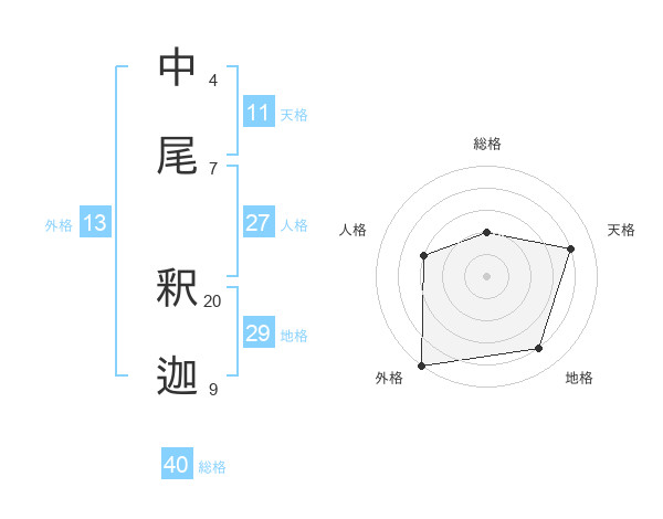 中尾 釈迦さんの外格は13画の5点!