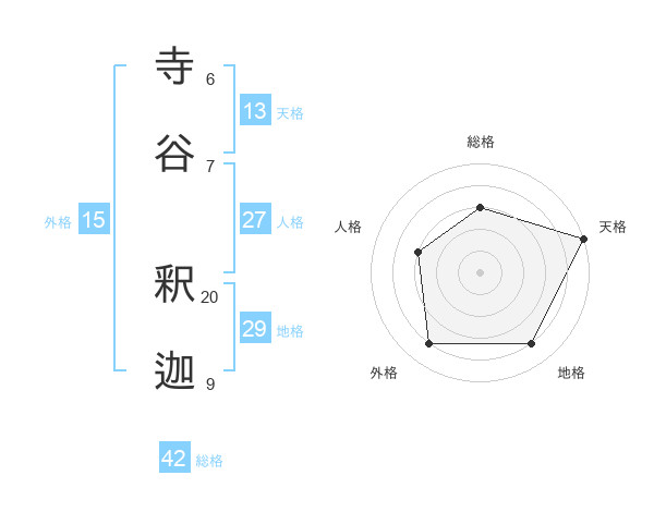 寺谷 釈迦さんを姓名の画数から五運を鑑定