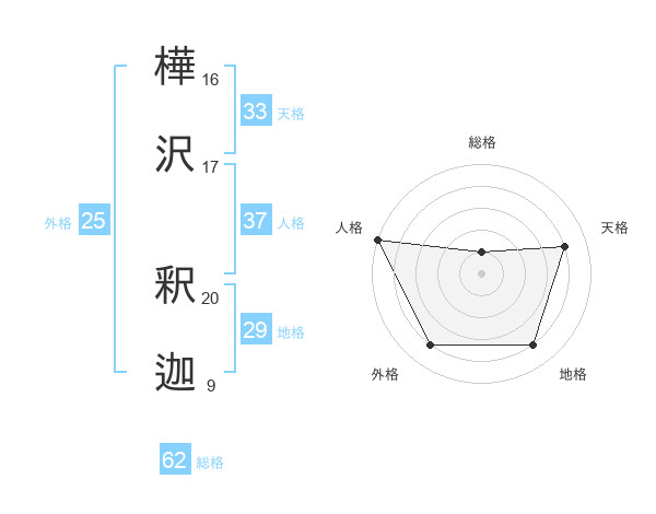 樺沢 釈迦さんを姓名の画数から五運を鑑定
