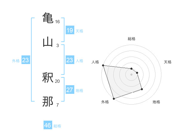 亀山 釈那さんを姓名の画数から五運を鑑定