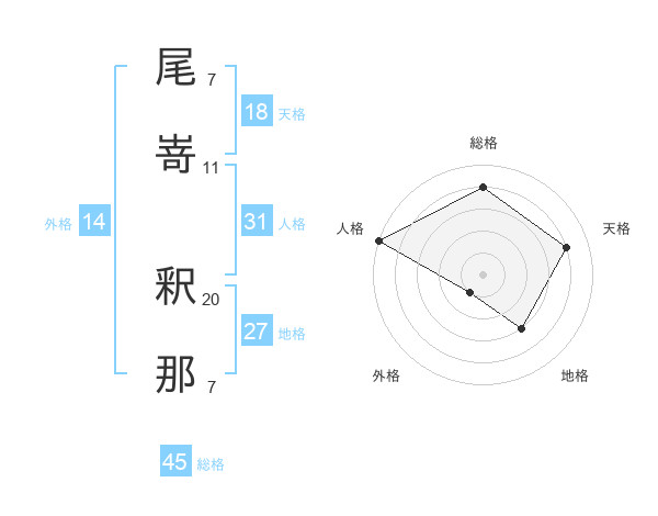 尾嵜 釈那さんを姓名の画数から五運を鑑定