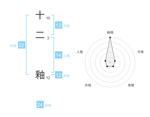 十二 釉さんの総格は24画の5点!