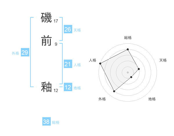 磯前 釉さんの総格は38画の4点!