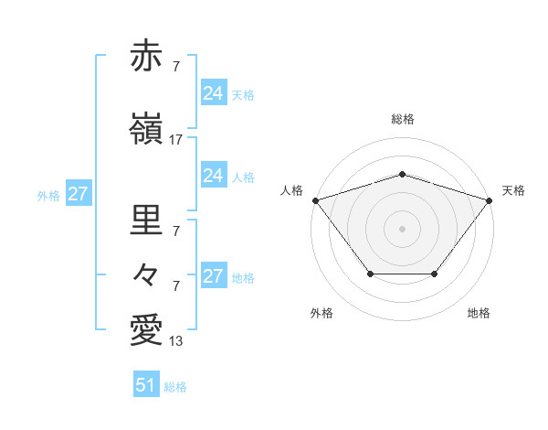 赤嶺 里々愛さんを姓名の画数から五運を鑑定
