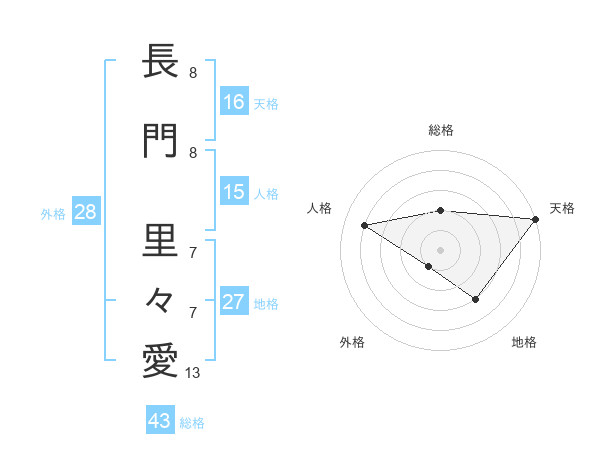 長門 里々愛さんを姓名の画数から五運を鑑定