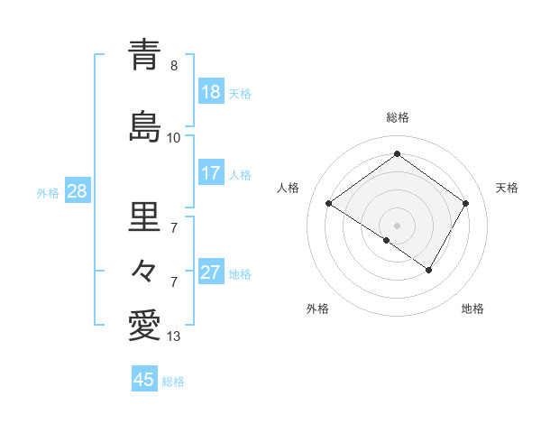 青島 里々愛さんを姓名の画数から五運を鑑定