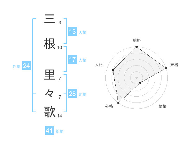 三根 里々歌さんの天格は13画の5点!