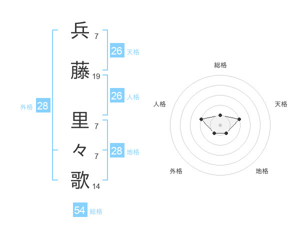 兵藤 里々歌さんを姓名の画数から五運を鑑定