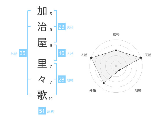 加治屋 里々歌さんを姓名の画数から五運を鑑定