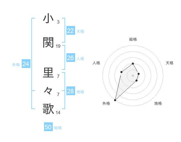 小関 里々歌さんを姓名の画数から五運を鑑定