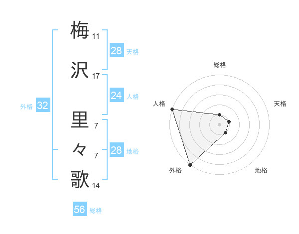 梅沢 里々歌さんを姓名の画数から五運を鑑定