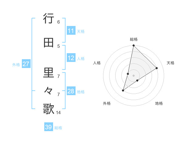 行田 里々歌さんを姓名の画数から五運を鑑定