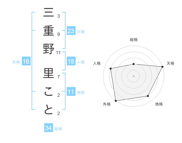 三重野 里ことさんの天格は23画の5点!