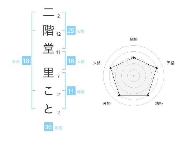 二階堂 里ことさんの天格は25画の4点!