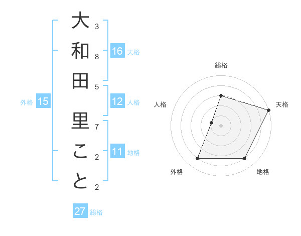 大和田 里ことさんを姓名の画数から五運を鑑定